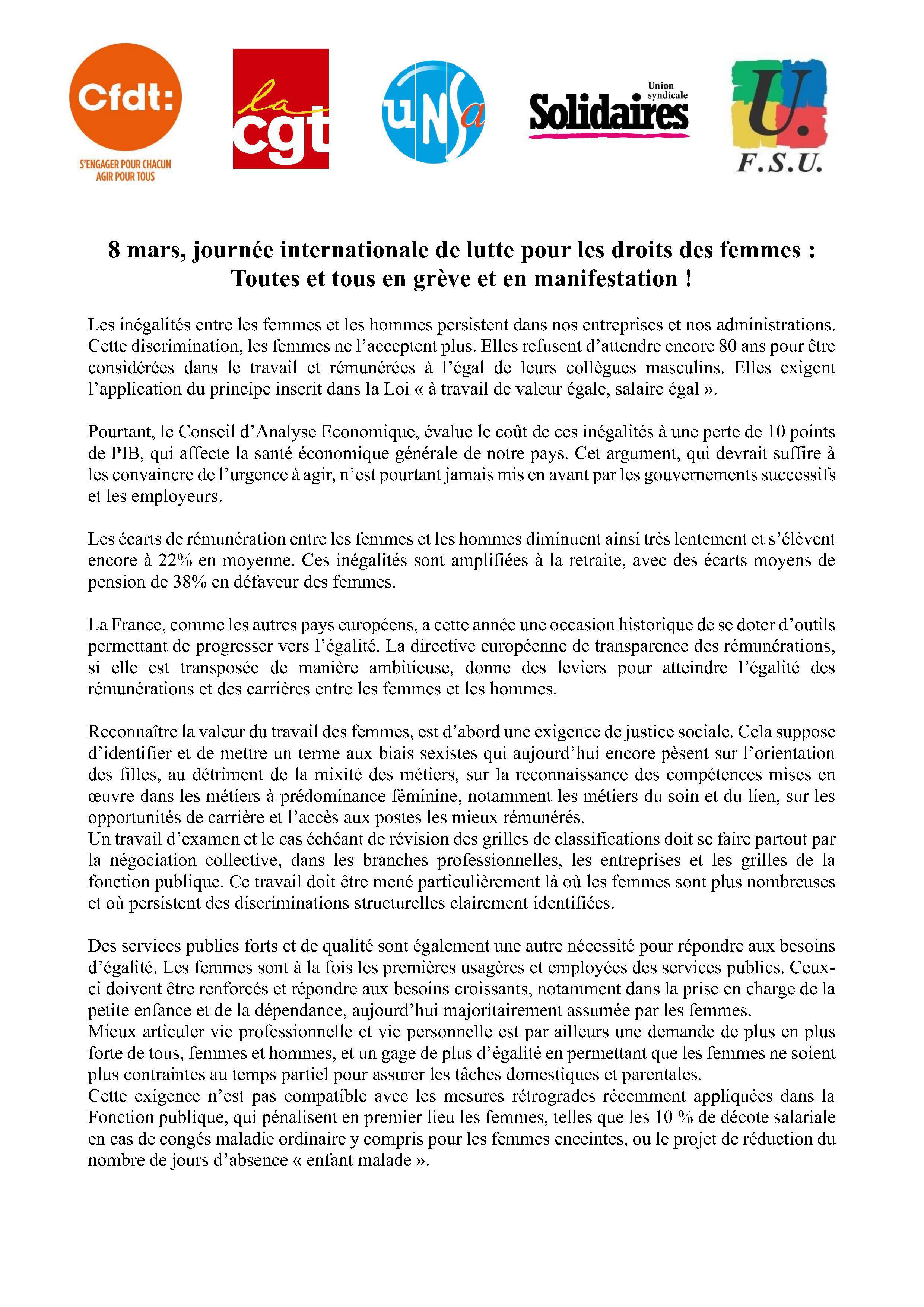 Journée internationale des droits des femmes – 8 mars